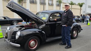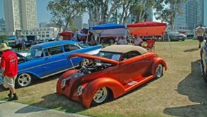John McDowell in his ’47 Ford Hot Rod, Bob Dunn in his ’68 Camaro, and Joyce and me in our ’37 Buick Special Coupe caravanned to the event, arriving around 6:45a. After a short wait, Craig Moya of the Corvette Owners Club of San Diego opened parking and the show was on. Once we got parked along the east side of the south 40 by the marina and prepped the cars for the show, we checked out the rest of the park. Making the rounds, we found 5 more Poway Cruiser member cars bringing the club total to 8 cars.